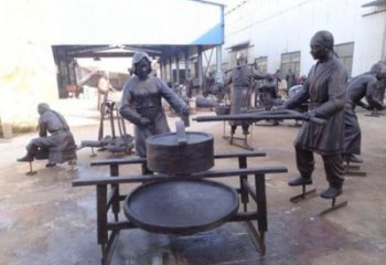 玻璃鋼仿銅農(nóng)耕文化情景人物小品雕塑