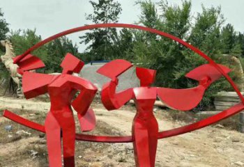 遠程動感主題戶外公園不銹鋼幾何彩繪抽象人物雕塑
