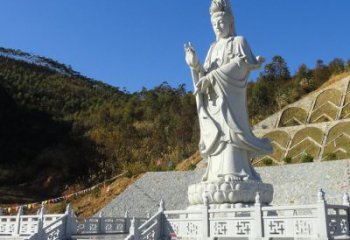 經典傳統工藝精致大理石浮雕觀音站神像擺件