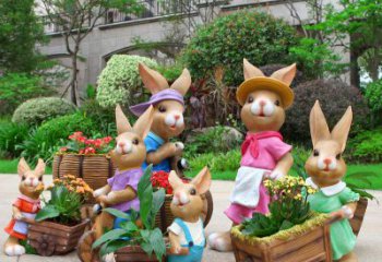 采用玻璃鋼材質,表面仿銅處理的兔子雕塑,形態可愛,色彩鮮明。作為戶外公園的裝飾品,它不僅美化了環境,也增添了一份生機與活力。