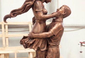 銅雕傘情侶接吻雕塑,在景區(qū)擁抱浪漫