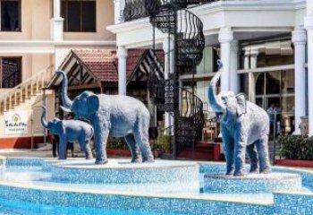大象在傳統文化中寓意祥和,吉祥,在佛教中象征著力量與智慧,放置在商場、店鋪、企業門口,寓意吸財納福、生意興隆,起到增添吉祥的作用,表達對美好生活的向往 。